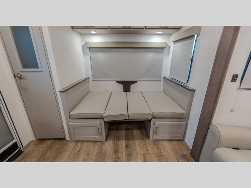 The composite sidewalls are ultra durable and the Benchmark chassis features a super saver upper deck. There are industry leading tank sizes, smart storage solutions, flush floor slide out floors throughout, and no carpet to make cleaning easier than ever.