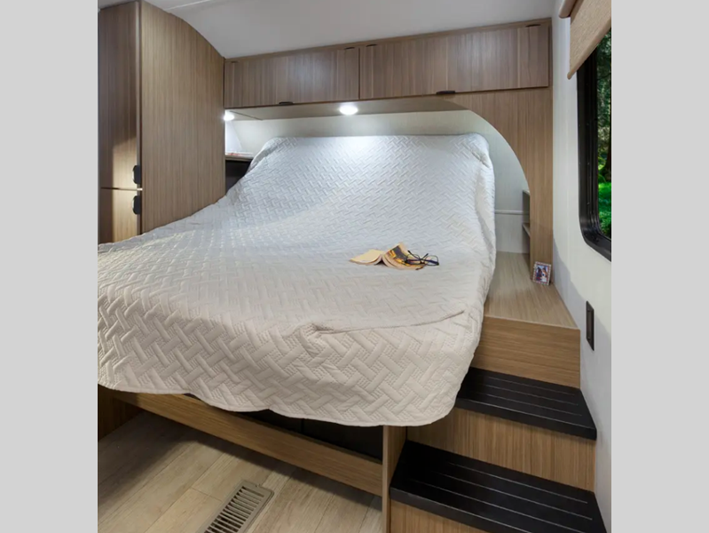 Sleeps 2 Slides 1 Length 28 ft 5 in Ext Width 8 ft Ext Height 11 ft 1 in Hitch Weight 650 lbs Dry Weight 5942 lbs Cargo Capacity 2508 lbs Fresh Water Capacity 61 gals Grey Water Capacity 64 gals Black Water Capacity 32 gals Available Beds Custom King Versa Tilt Refrigerator Type 12V Number of Awnings 1 Water Heater Type On Demand AC BTU 13500 btu Awning Info 16' with 4K Blade Lighting Axle Count 2 Shower Type Walk-In Shower Similar Floorplans