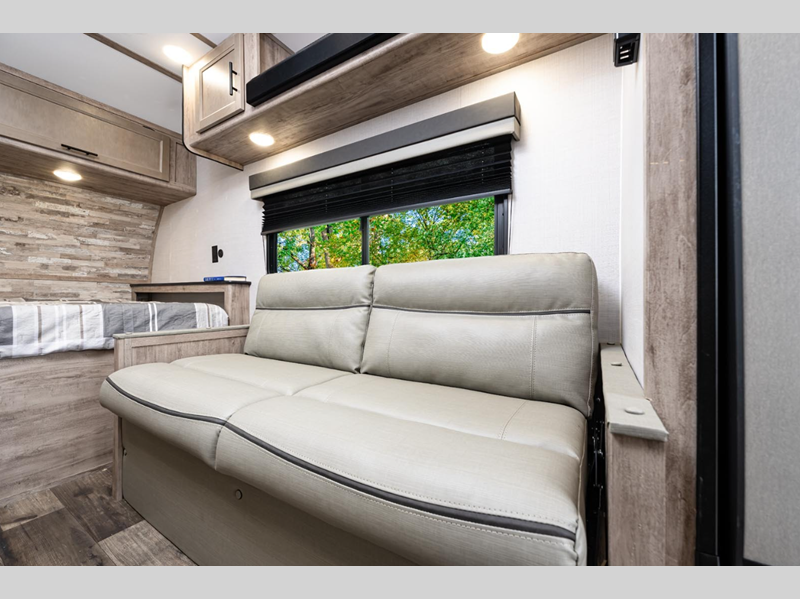 Sleeps 4 Length 18 ft 2 in Ext Width 6 ft 9 in Ext Height 9 ft 2 in Int Height 6 ft Hitch Weight 340 lbs Dry Weight 2510 lbs Cargo Capacity 1330 lbs Fresh Water Capacity 18 gals Grey Water Capacity 18 gals Black Water Capacity 18 gals Furnace BTU 20000 btu Number Of Bunks 2 Refrigerator Type Gas/Electric Cooktop Burners 2 LP Tank Capacity 20 lbs Water Heater Capacity 6 gal Water Heater Type DSI Gas AC BTU 5000 btu Axle Count 1 Number of LP Tanks 1 Shower Type Wet/Bath Shower Solar Wattage 100 watts Similar Floorplans