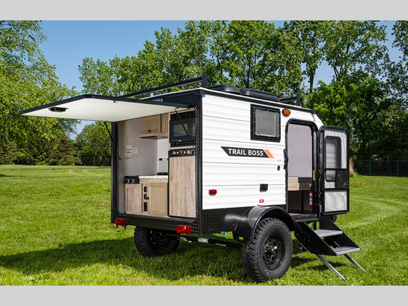 These Gulf Stream RV Trail Boss teardrop trailers pack all of the living essentials into a small, incredibly light and nimble unit! Their rugged package lets you explore new worlds in the wild while still providing comfort, entertainment, security, and food necessities.