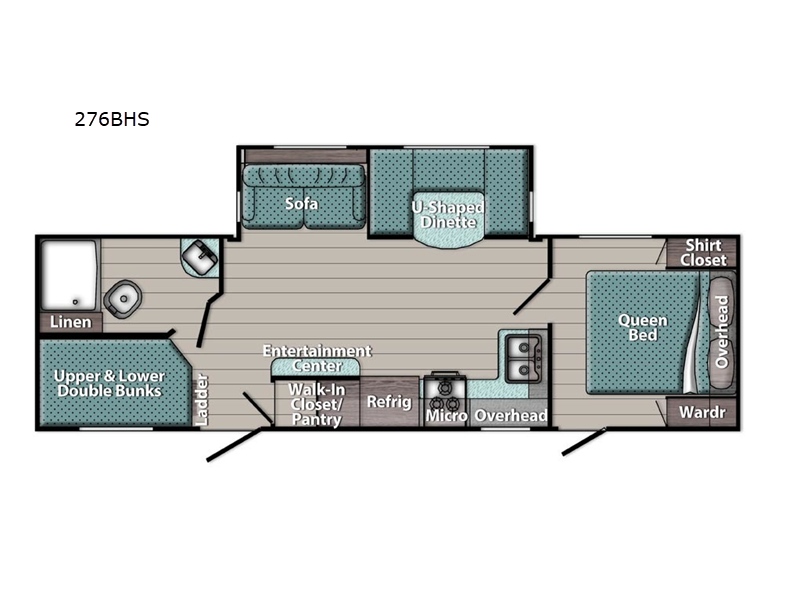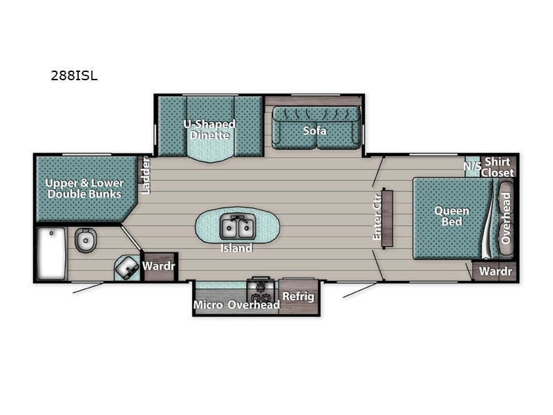Sleeps 9 Slides 1 Length 32 ft 3 in Ext Width 8 ft Ext Height 11 ft 3 in Int Height 6 ft 8 in Hitch Weight 750 lbs Dry Weight 5680 lbs Cargo Capacity 3870 lbs Fresh Water Capacity 35 gals Grey Water Capacity 67 gals Black Water Capacity 33 gals Furnace BTU 25000 btu Number Of Bunks 2 Available Beds Queen Refrigerator Type 12V Refrigerator Size 10.7 cu ft Cooktop Burners 3 Number of Awnings 1 LP Tank Capacity 20 lbs Water Heater Type Tankless AC BTU 13500 btu Awning Info Electric w/LED Lights Axle Count 2 Number of LP Tanks 2 Shower Type Standard Electrical Service 30 amp Similar Floorplans