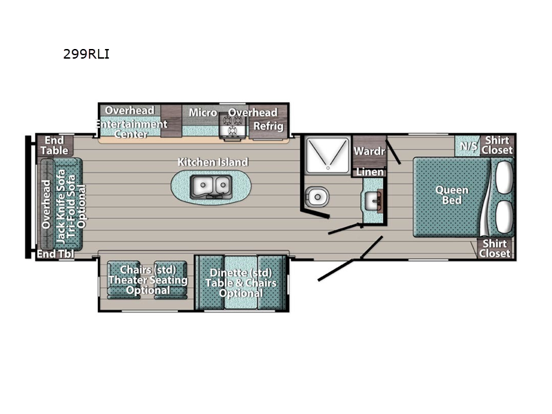 - Power Slide Out or Double Slide Out (see floor plans for specifics)