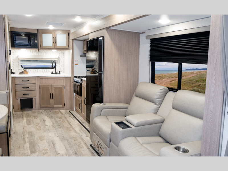 Sleeps 3 Slides 1 Length 30 ft Ext Width 8 ft Ext Height 11 ft 1 in Int Height 6 ft 8 in Hitch Weight 550 lbs Dry Weight 5990 lbs Cargo Capacity 1560 lbs Fresh Water Capacity 36 gals Grey Water Capacity 68 gals Black Water Capacity 34 gals Tire Size 14" Furnace BTU 25000 btu Available Beds Queen Refrigerator Type Everchill Refrigerator Size 10.7 cu ft Cooktop Burners 3 Number of Awnings 1 LP Tank Capacity 20 Water Heater Type Tankless AC BTU 13500 btu Awning Info Electric with LED Light Axle Count 2 Number of LP Tanks 2 Shower Type Standard Electrical Service 30 amp Similar Floorplans