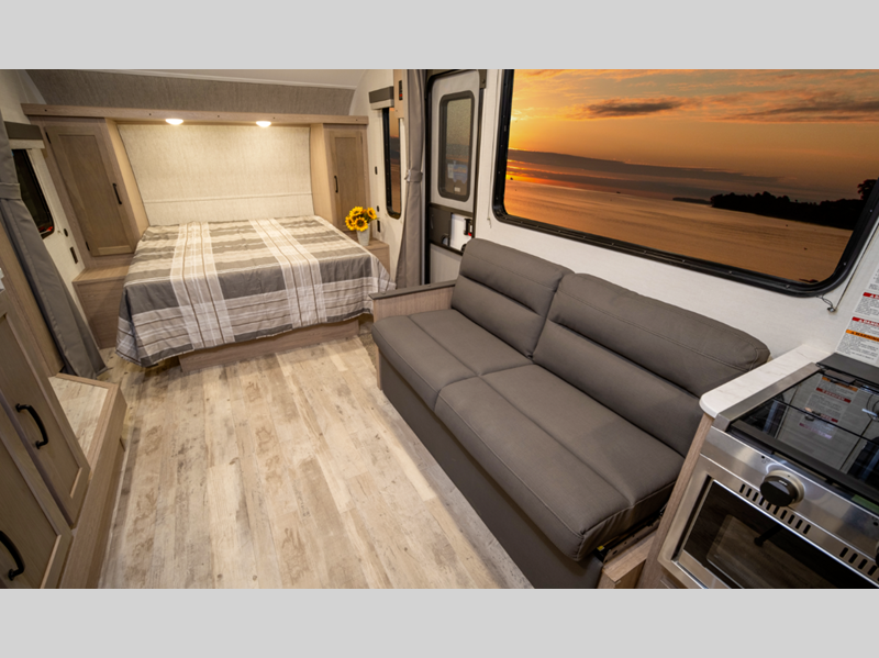 Sleeps 3 Slides 1 Length 22 ft 11 in Ext Width 8 ft Ext Height 11 ft 2 in Int Height 6 ft 8 in Hitch Weight 400 lbs Dry Weight 4360 lbs Cargo Capacity 3027 lbs Fresh Water Capacity 36 gals Grey Water Capacity 29 gals Black Water Capacity 29 gals Tire Size 14" Furnace BTU 20000 btu Available Beds Queen Refrigerator Type Everchill Refrigerator/Freezer Refrigerator Size 10.7 cu ft Cooktop Burners 3 Number of Awnings 1 LP Tank Capacity 20 lbs Water Heater Type Tankless AC BTU 13500 btu Awning Info Electric with LED Lights Axle Count 2 Number of LP Tanks 2 Shower Type Radius Electrical Service 30 amp Similar Floorplans