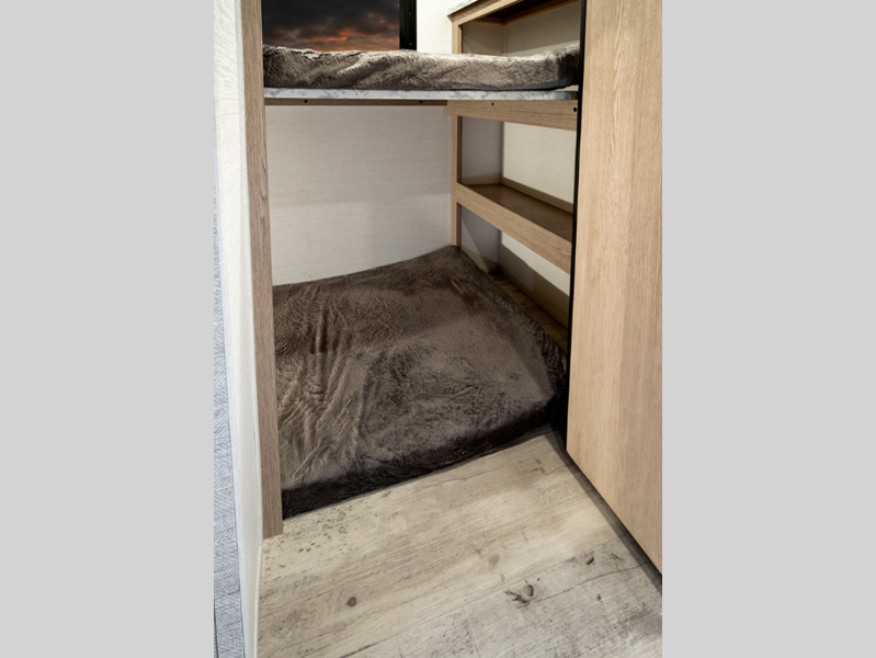 Sleeps 9 Slides 1 Length 32 ft 6 in Ext Width 8 ft Ext Height 11 ft 1 in Int Height 6 ft 8 in Hitch Weight 810 lbs Dry Weight 6210 lbs Cargo Capacity 1600 lbs Fresh Water Capacity 23 gals Grey Water Capacity 33 gals Black Water Capacity 33 gals Tire Size 14" Furnace BTU 20000 btu Number Of Bunks 4 Available Beds Queen Refrigerator Type Everchill Refrigerator/Freezer Refrigerator Size 10.7 cu ft Cooktop Burners 3 Number of Awnings 1 LP Tank Capacity 20 lbs Water Heater Type Tankless AC BTU 13500 btu Awning Info Electric with LED Lighting Axle Count 2 Number of LP Tanks 2 Shower Type Tub/Shower Combo Electrical Service 30 amp Similar Floorplans