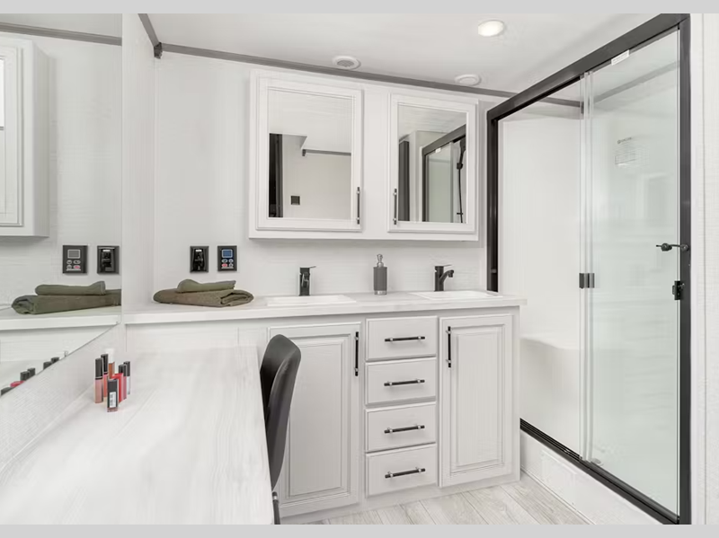 Keystone Retreat destination trailer 391CLDL highlights: Double Loft Shower with ... more about Retreat 391CLDL