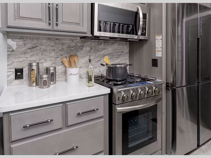 The full-size residential appliances in the kitchen will help you prepare your favorite holiday meals, and there is quite a lot of storage space so that you can leave your vacation clothes and toys waiting for you when you come back to begin a new adventure. And there are models aluminum or laminated sidewalls to choose from to best fit your preference!